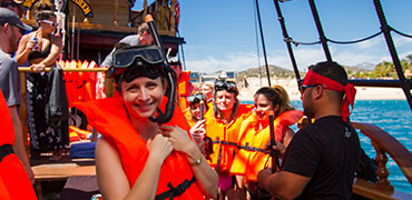 You will be hard pressed to find a tour that packs so much. Get an upclose view of the bio-diversity that has made Cabo famous, our merry crew of Pirates will take you snorkeling at the best spot in Cabo San Lucas, will eat, drink, fight and play in our beautiful ship. A buffet style breakfast with fluffy pacakes, scrambled eggs and fresh fruit ready to satisfy even the most hungry sailors. We look forward to having you aboard!